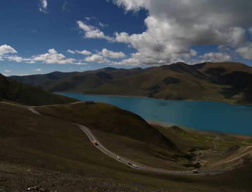羊卓雍措(やむどく・ゆむつぉ)は中国チベット自治区山南市に位置し、氷河の土石流が河道を塞いでできたものです。湖水面積は638平方キロメートル、湖面の海抜は4441メートル、平均深さは約23.6メートル、貯水量は約16立方キロメートル