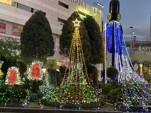 JR高槻駅前イルミネーション 今年のテーマは「富士山、荘川桜、将棋のまち高槻」がイメージされています。