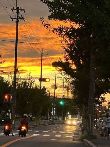 『秋の日はつるべ落とし』日が短くなり、虫の音が秋の深まりを感じさせる今日この頃、今夕のいっしゅんの夕焼けです。