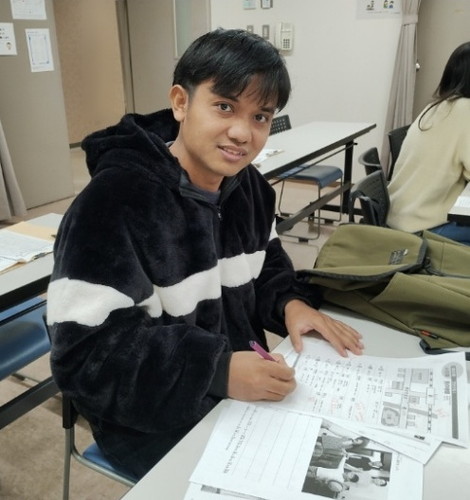 マスロルさんは、4年前にインドネシアから日本に来ました。道路用の各種ブロックや雨水桝などのコンクリート製品を作る仕事をしています。仕事だけでなく、オンラインの大学にも入学して経済学の勉強をしています。クスクスには3年前に入会し、ほとんど欠席することなく、毎回熱心に日本語の学習を続けている真面目な学習者さんです。土日も学習にがんばるマスロルさんには頭が下がります。