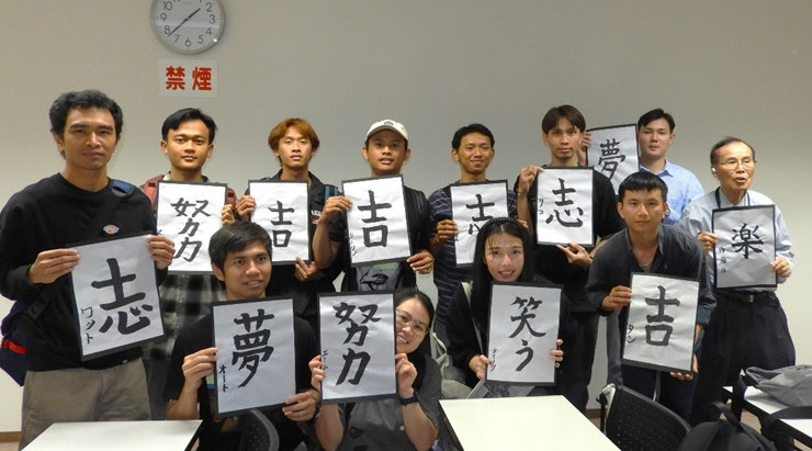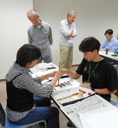 new 書道体験で11名が漢字に挑戦しました