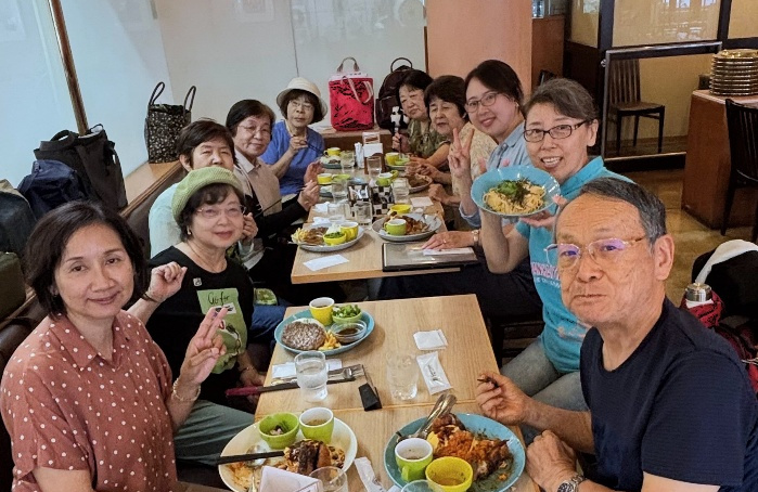 夏休み前の7月最後の水曜日に高槻のレストランで会員7名学習者3名が集まり昼食会をしました。